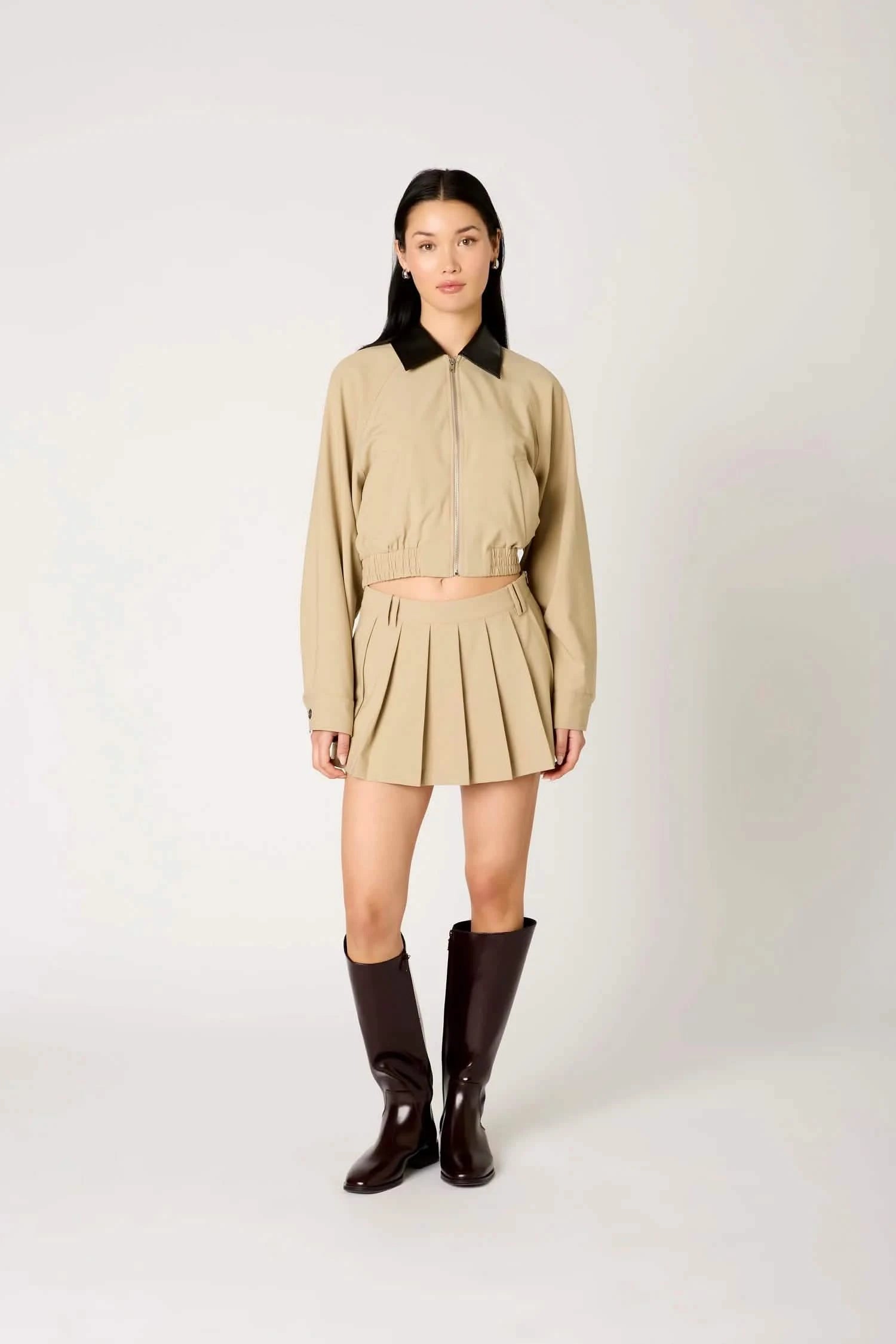 The Daniel Bomber Jacket is a relaxed essential with just enough structure. Designed with a contrast collar, front zip closure, and cropped cut, it features an elastic hem that adds shape to the oversized fit. Front pockets and full lining bring in function and comfort—making it an easy layer for transitional days or casual nights out.